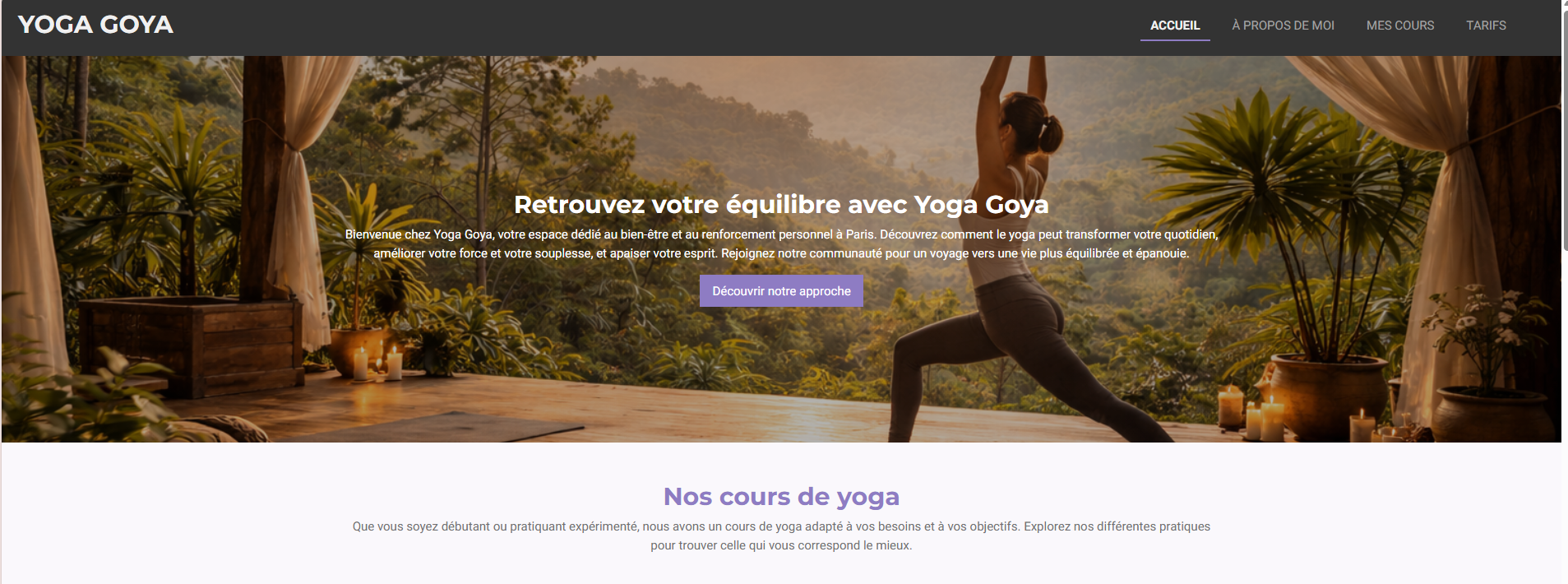 Un espace en ligne invitant à la détente et à la découverte du yoga. Visitez le site : Cours de Yoga